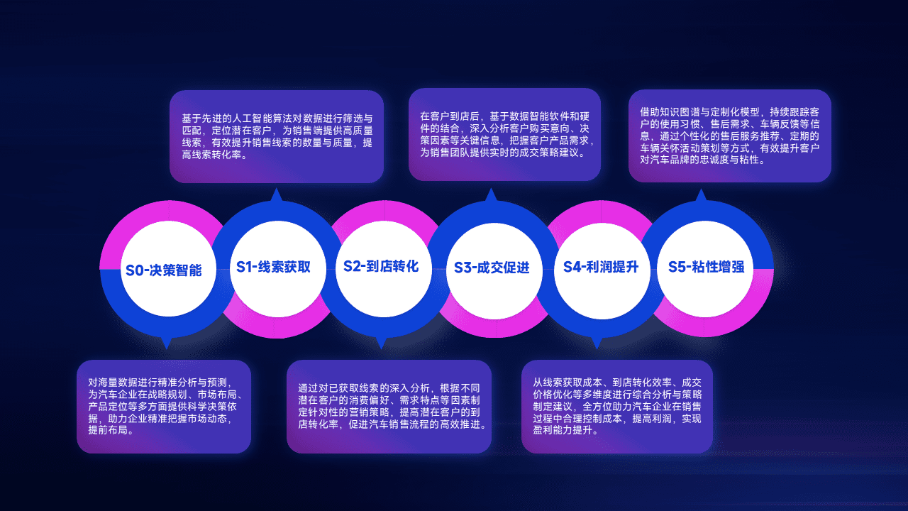通过拓宽潜在客户来源、、优化线索分配并提高到店转化率,,,以增强销售效率。。同时,,,利用线索数据不断优化分析模型,,,,有效提升转化率,,,扩大营销影响力。。。。
